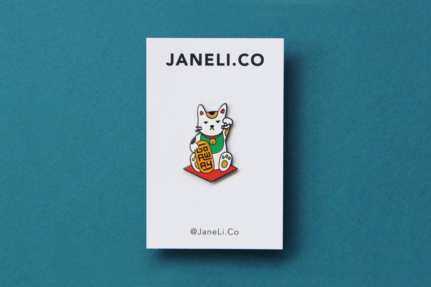What better way to let them know you’re not interested than with this enamel pin featuring grumpy Maneki Neko (or beckoning cat) with metallic gold accents telling them to “Go Away.” Let this enamel Go Away Cat pin be the voice that you don’t have – or need! Size: 0.86" x 1.25"