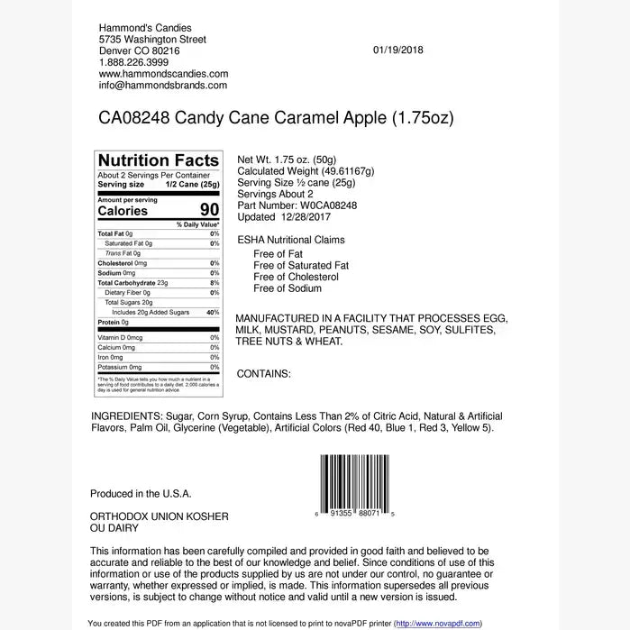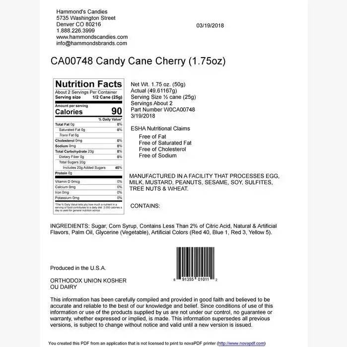 Details: • Fat-free, cholesterol-free, sodium-free, gluten-free • Approximately 8" from the crook of the candy cane to the end. • Hammond's candy canes are handmade, and the size may vary Made from scratch, we create prized confections by hand. We keep quality and freshness in mind when it comes to our ingredients. Our long-standing traditional recipes require only the highest quality ingredients. Our small batch candy is crafted with care to ensure bite-after-bite of pure, sweet, goodness. Locally sourced, when possible, the ingredients remain simple… Drizzle, dollop, dip and devour, hand pulled perfection that no one can resist.