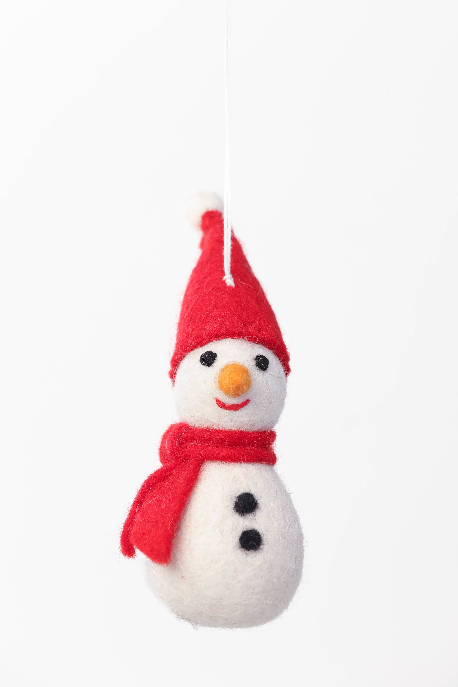 A charming snowman ornament, handcrafted in Nepal by resilient women survivors. This fair trade piece adds festive cheer and ethical style to your holiday décor and makes a unique gift for any occasion!
