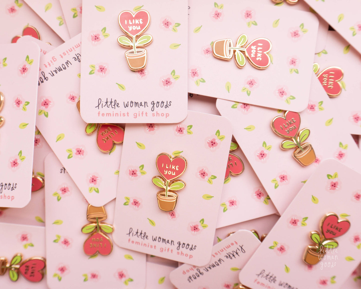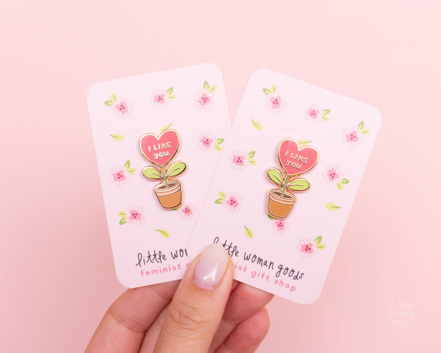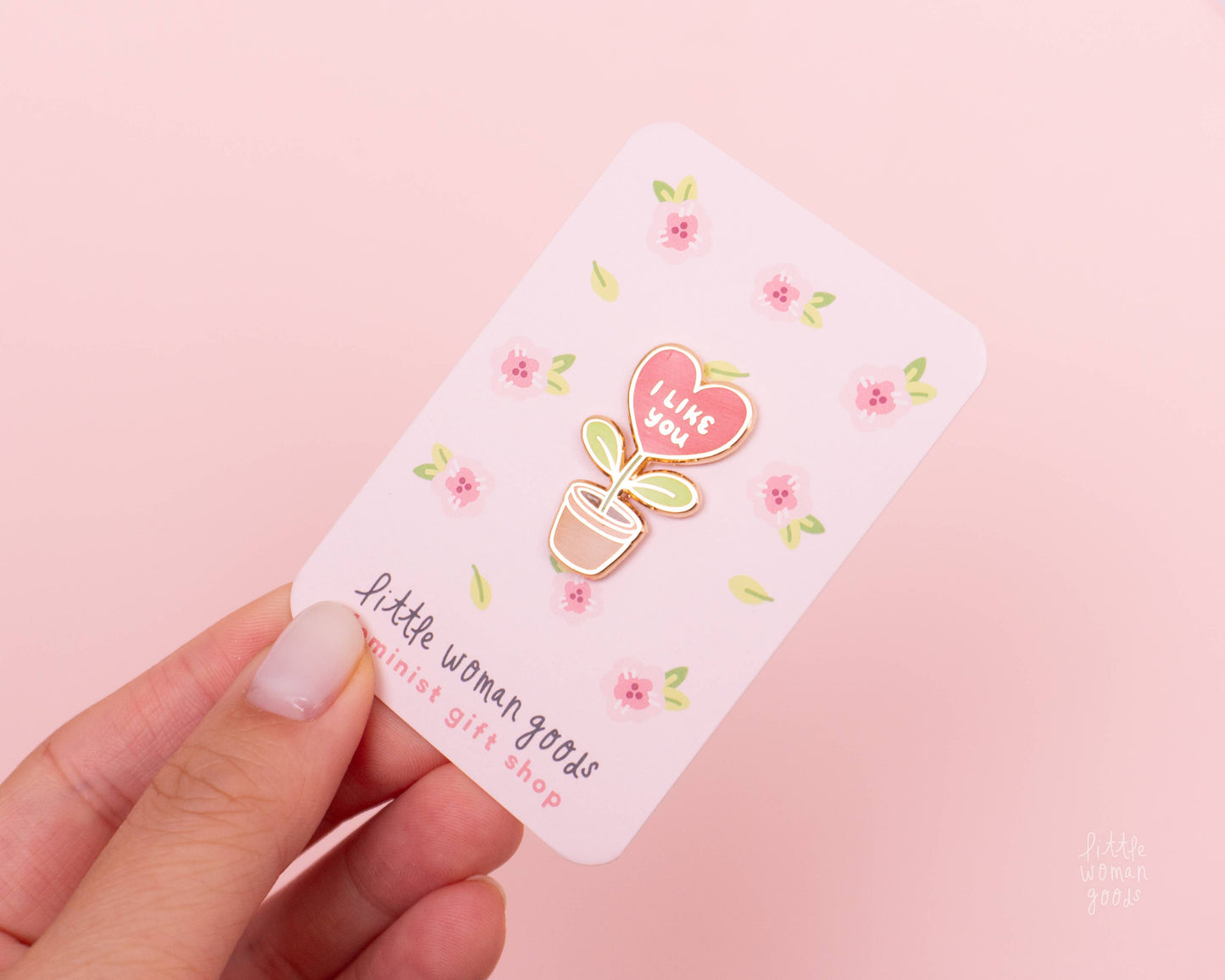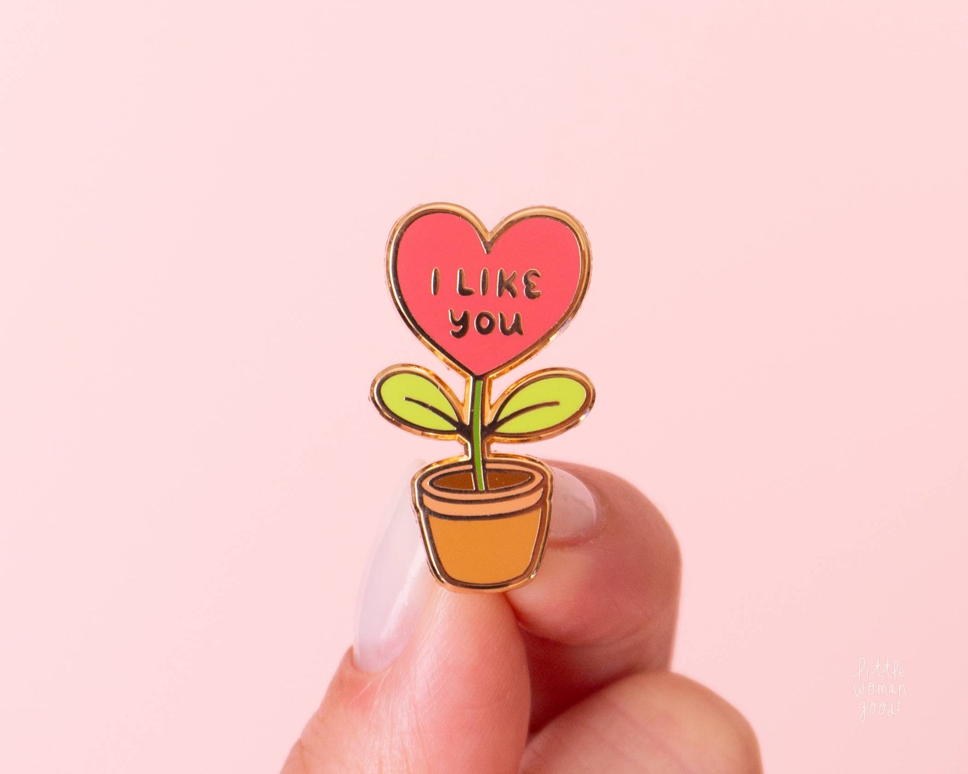 I Like You Enamel Pin- Cute Heart Plant Design, Self Love