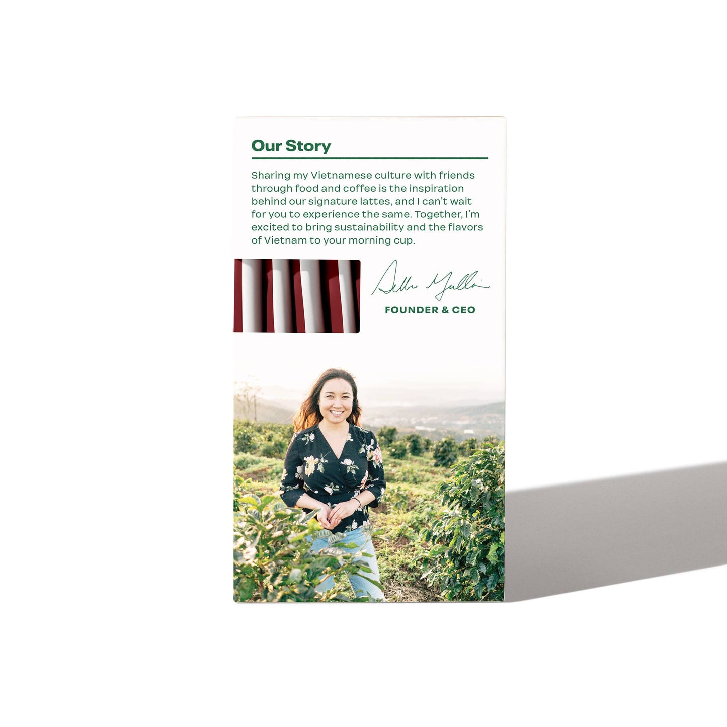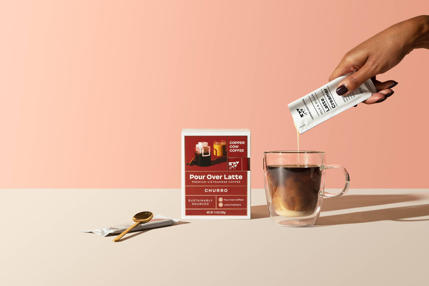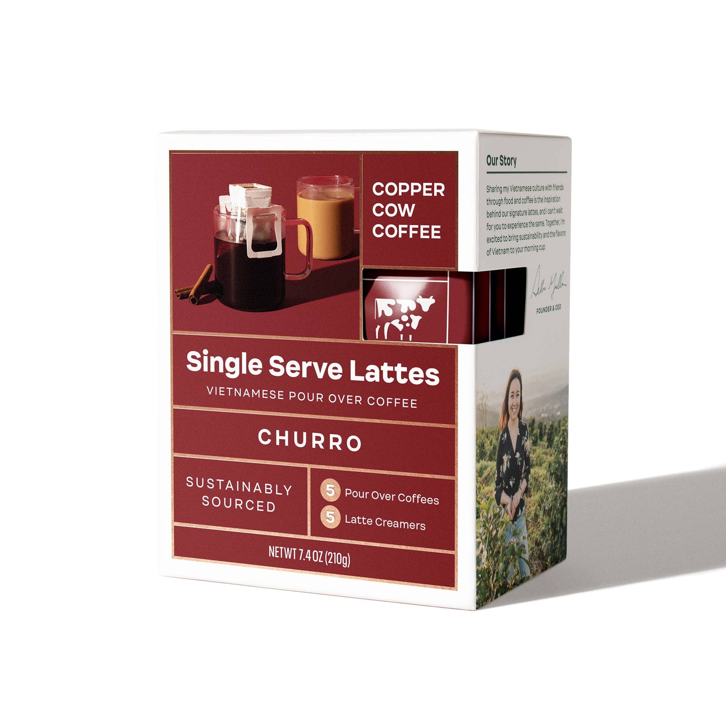 People LOVE our latte kits for gifting, travel, or to brighten up their own coffee routine! CHURRO: This blend of decadent cinnamon Vietnamese coffee and sugary condensed milk is better than dessert. EASY TO USE: Four words: tear, hang, pour, enjoy! Our prefilled single-serve pour-overs are convenient for at home or on-the-go. Just add a mug and hot water! 100% VIETNAMESE ORIGIN COFFEE: Our unique blend of robusta and arabica coffee exudes tasting notes of rich chocolate and nutty undertones with a smooth finish. REAL, WHOLE INGREDIENTS: We don't use any artificial ingredients, additives, or synthetic preservatives in our coffees. 2-INGREDIENT CREAMER: Made with just real milk and cane sugar, our sweetened condensed milk creamer upgrades any coffee to a perfectly